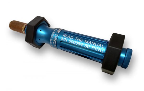 The Cigar Throttle is designed to eliminate a multitude of problems by encasing the lit cigar in a sophisticated, machined aluminum sleeve that protects it from the wind and encapsulates it along with the ashes. Continuous, controlled airflow that is speed adjustable keeps the cigar burning evenly and lit. It is attached to a steel tank by powerful neodymium magnets encased in a protective rubberized coating. So, no need to worry about scratching the paint. Whenever the rider wishes to take a puff, it is easily picked up and placed back down freeing up the hands to operate the bike controls.